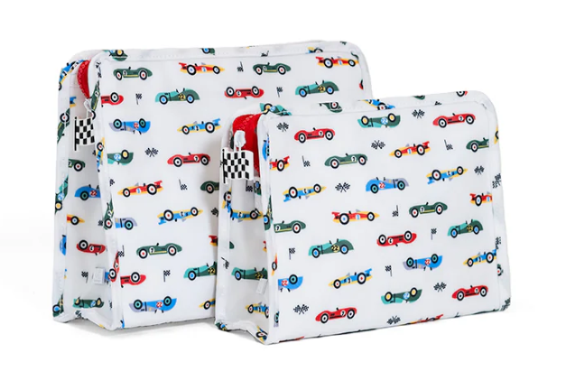 Our best-selling Roadies are our BFFs in the pouch world!  This print is available in 2 sizes, our Large Roadie is made with a thin Eco-friendly matte coating, an inside slip pocket and exterior snap open zip tabs for a wider opening and an easier access.