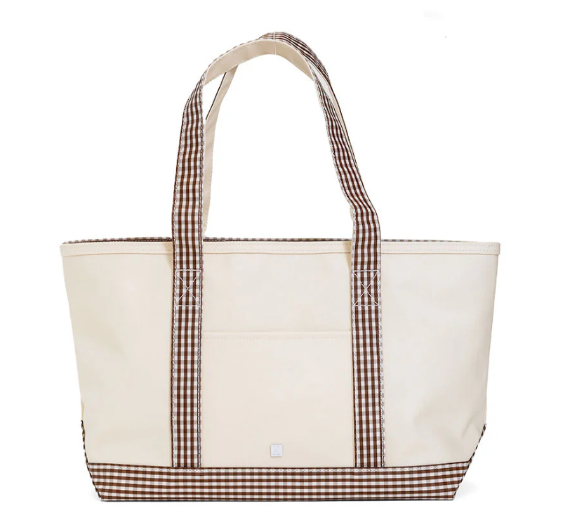 Our New Medium Tote in coated canvas – is perfect for day-to-day, beach, groceries, and getaways. This roomy interior can carry a 17” laptop, change of clothing and our other TRVL accessories. Designed with our Signature coating that is wipeable and machine washable Includes front exterior pocket and inside key clip strap.