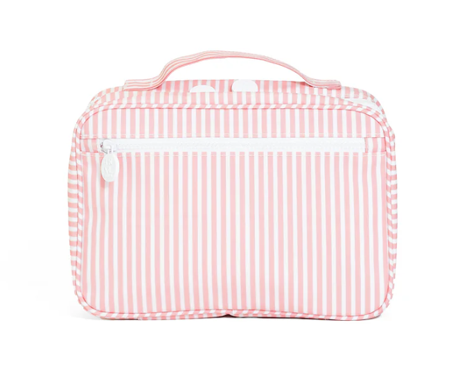 Use this fold up for makeup or toiletries, even baby and family TRVL! The inside pockets have roomy clear & mesh pockets and have an extra pouch for all the extras all to hang with the hook.